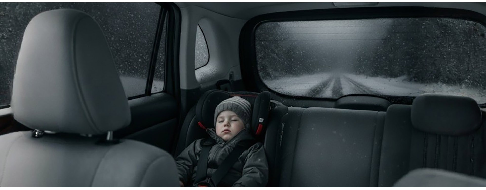 Viajar con niños en invierno puede ser un desafío. Los más pequeños suelen quedarse dormidos durante el trayecto y el sol fuerte de invierno puede despertarlos bruscamente. El montaje no invasivo de los parasoles SolarRide permite abrir libremente la ventanilla para ventilar el interior sin necesidad de retirar la protección. Esta función está disponible en modelos de coche seleccionados, siempre que las posibilidades técnicas lo permitan.