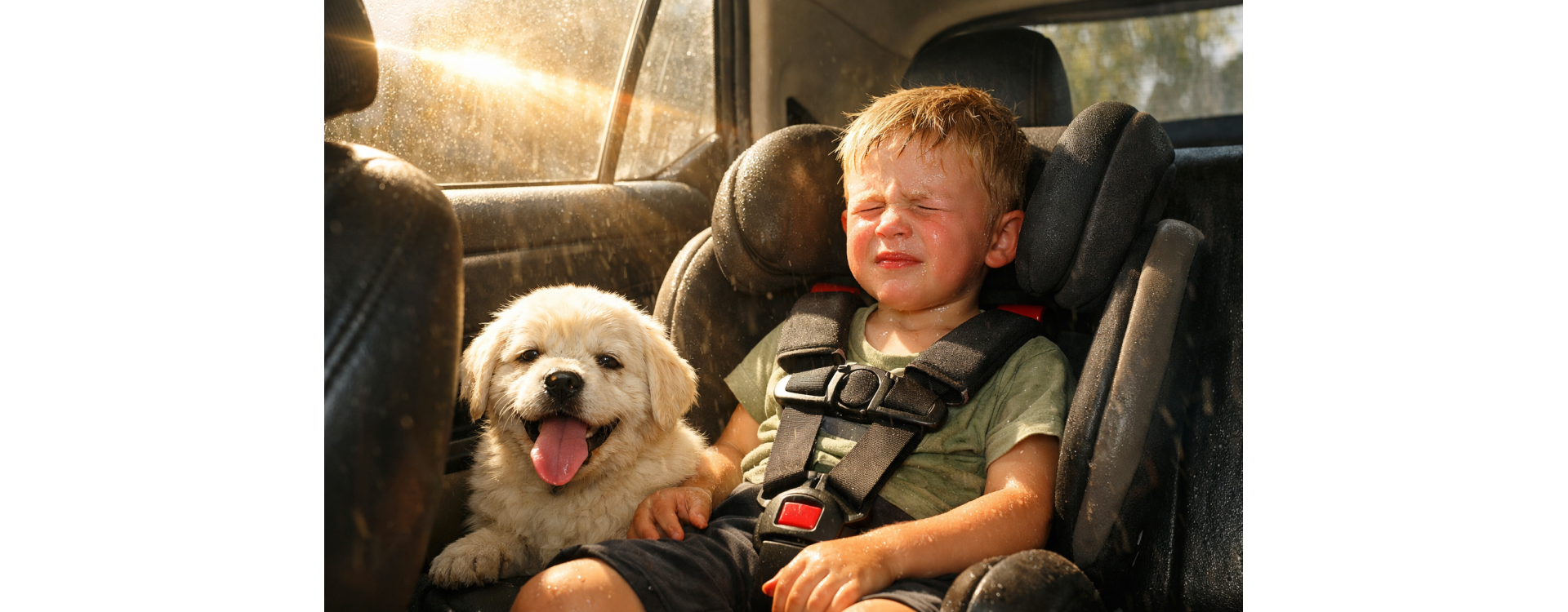 Viaggiare in auto con bambini e un cane può essere una prova di pazienza, specialmente quando il sole picchia...